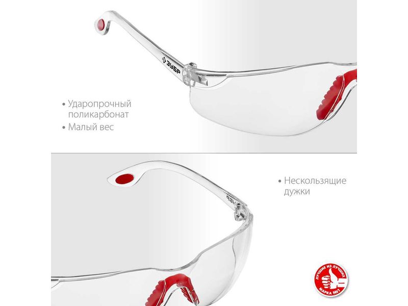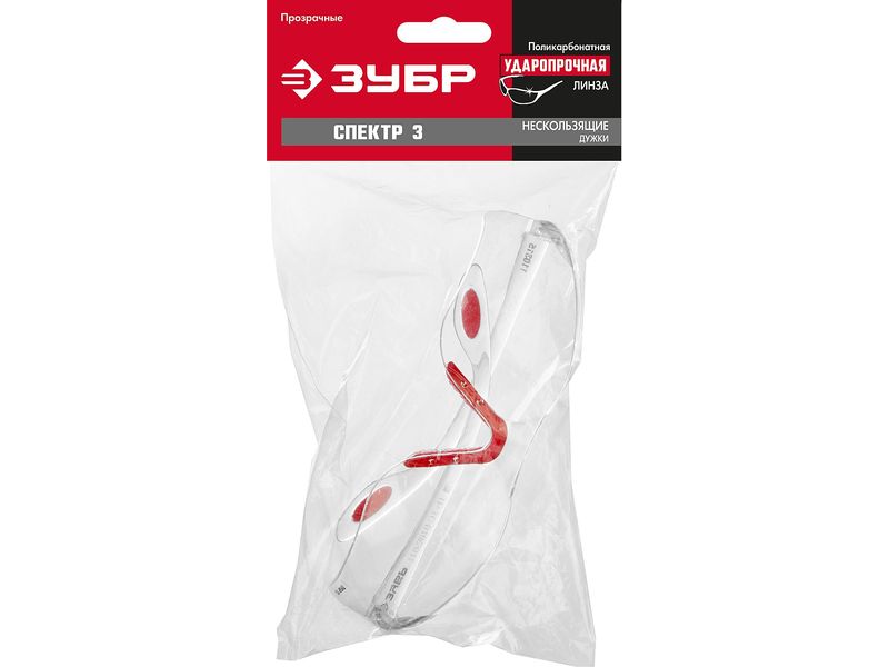 ЗУБР Спектр 3 Прозрачные, очки защитные открытого типа, двухкомпонентные дужки.