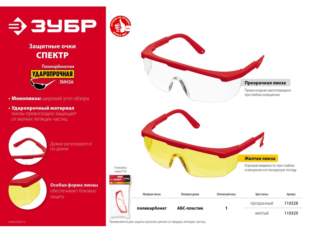 Купить Защитные жёлтые очки ЗУБР СПЕКТР 5 монолинза с дополнительной боковой защитой, открытого типа