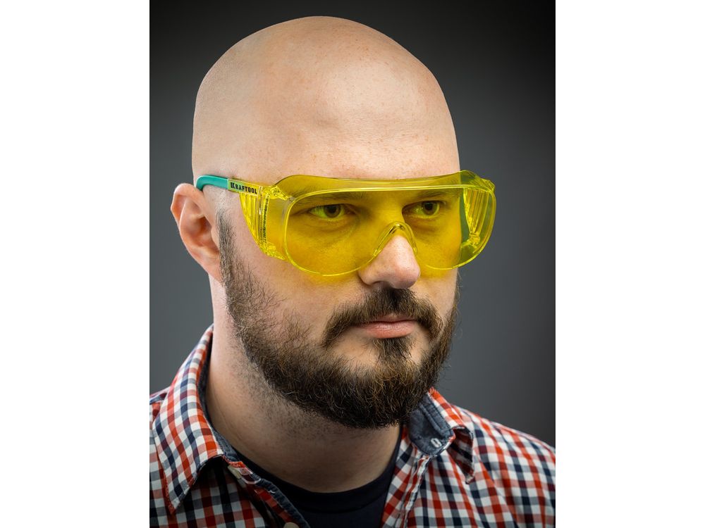 Защитные жёлтые очки KRAFTOOL ULTRA линза увеличенного размера устойчивая к царапинам и запотеванию, открытого типа