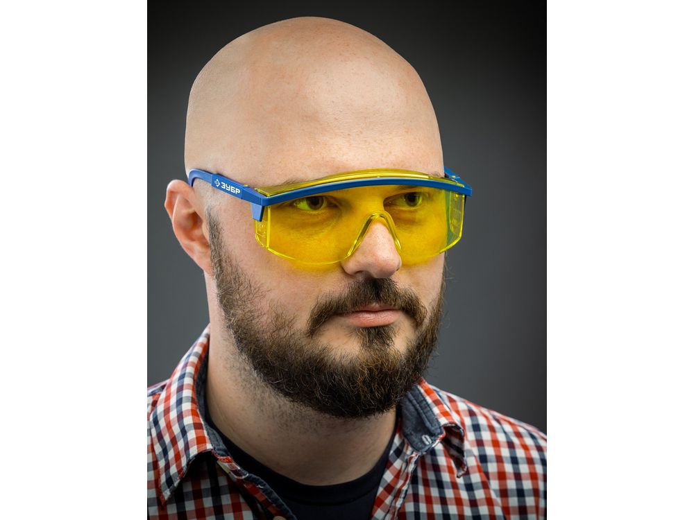 Купить Защитные жёлтые очки ЗУБР ПРОТОН линза увеличенного размера, открытого типа