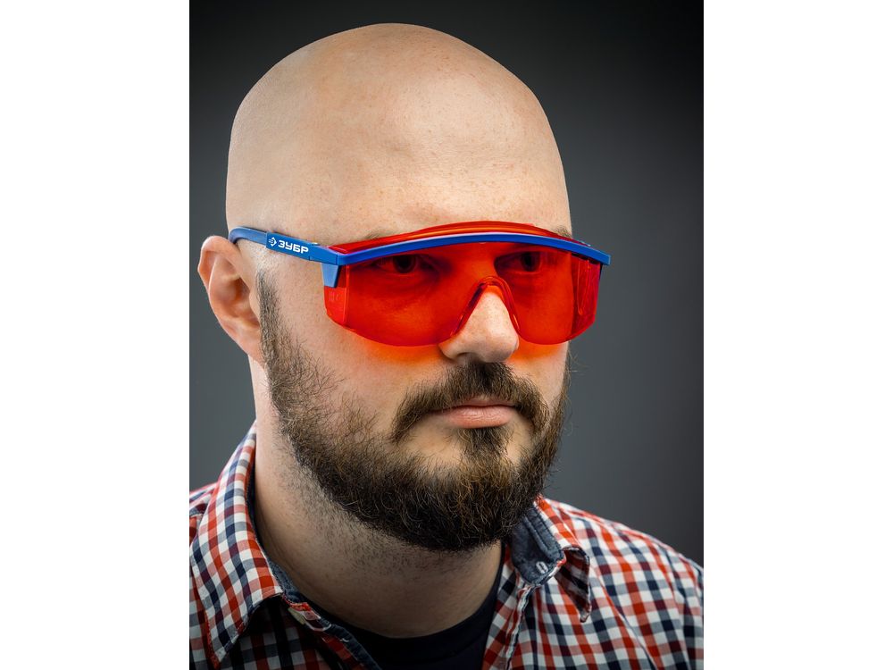 Защитные красные очки ЗУБР ПРОТОН линза увеличенного размера, открытого типа