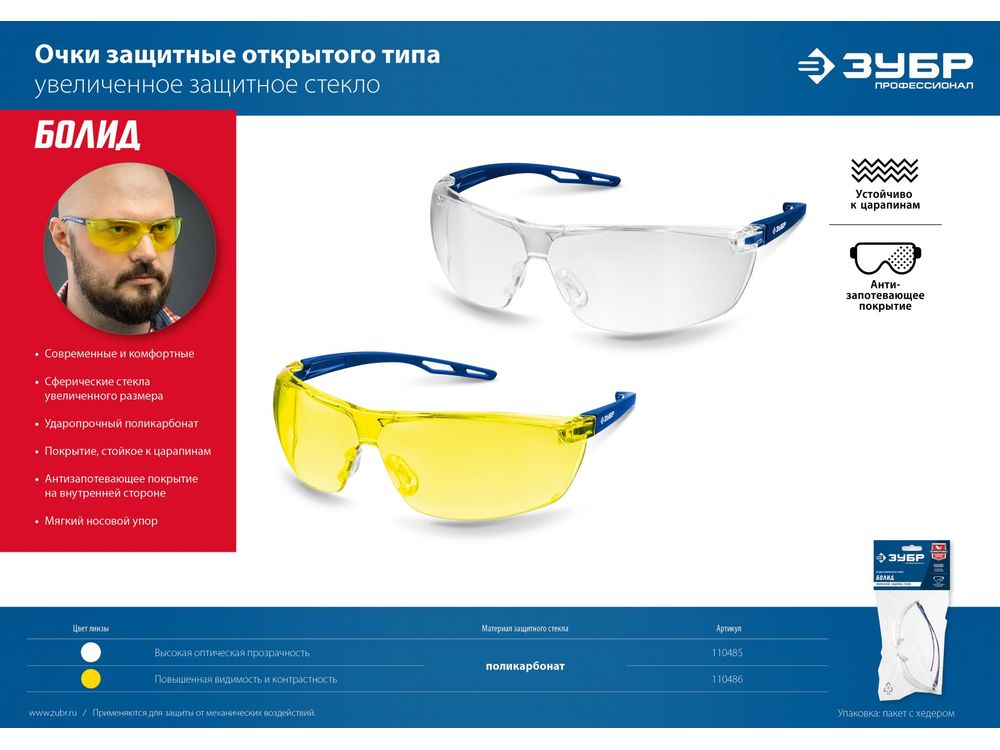 Облегчённые прозрачные защитные очки ЗУБР БАРЬЕР линза устойчивая к царапинам и запотеванию, открытого типа