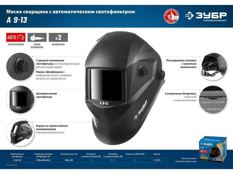 ЗУБР А 9-13 затемнение 4/9-13 маска сварщика с автоматическим светофильтром