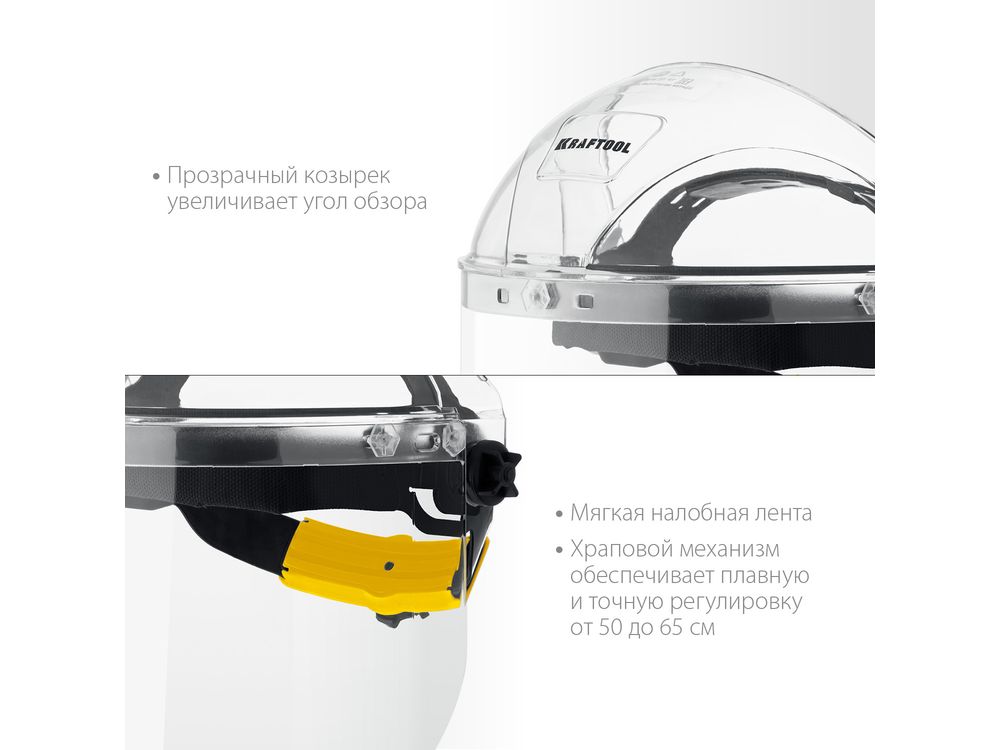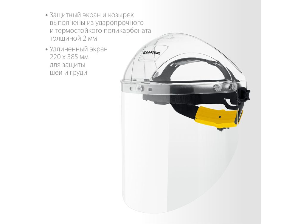 Защитный лицевой щиток KRAFTOOL SPECTRA, удлинённый экран 220х385мм, поликарбонат 2мм, храповик