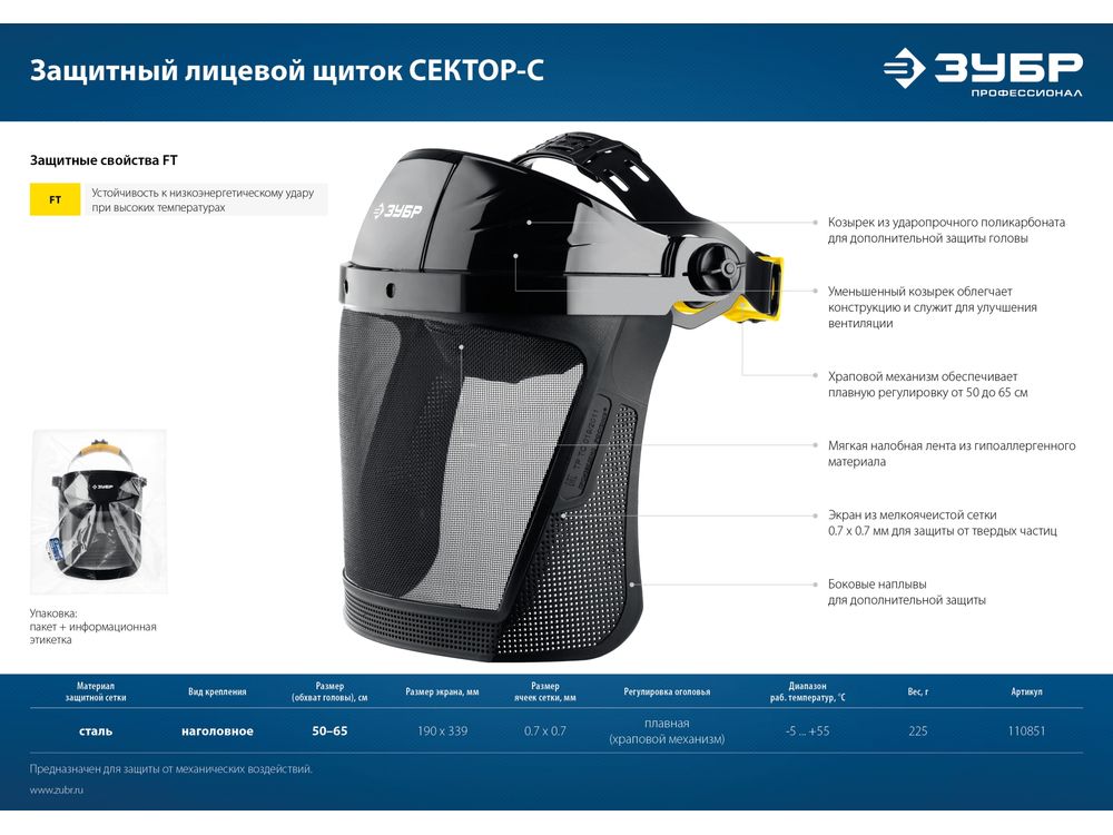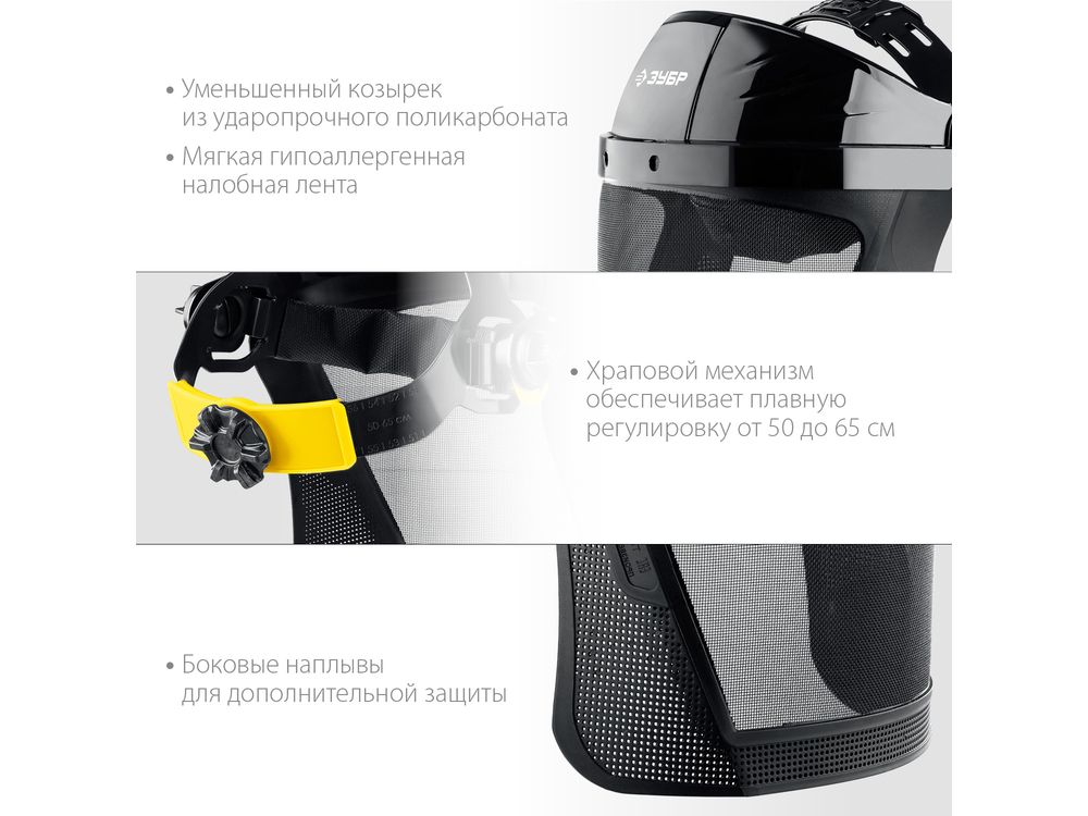 Защитный лицевой щиток ЗУБР СЕКТОР-С, экран из мелкоячеистой сетки 190х339мм, с храповиком, Профессионал