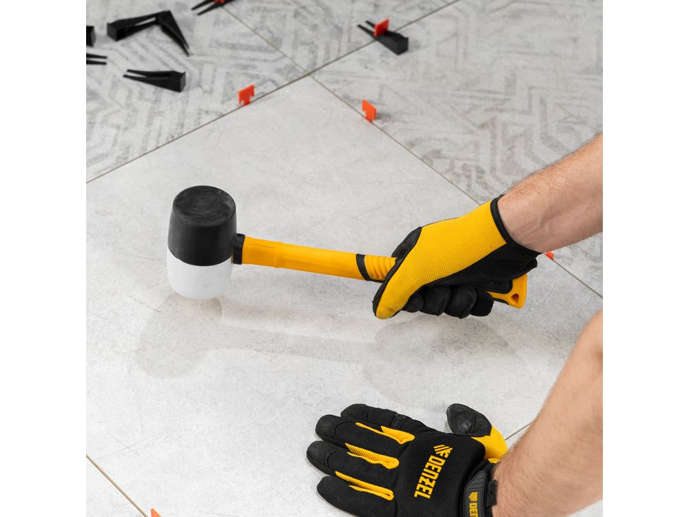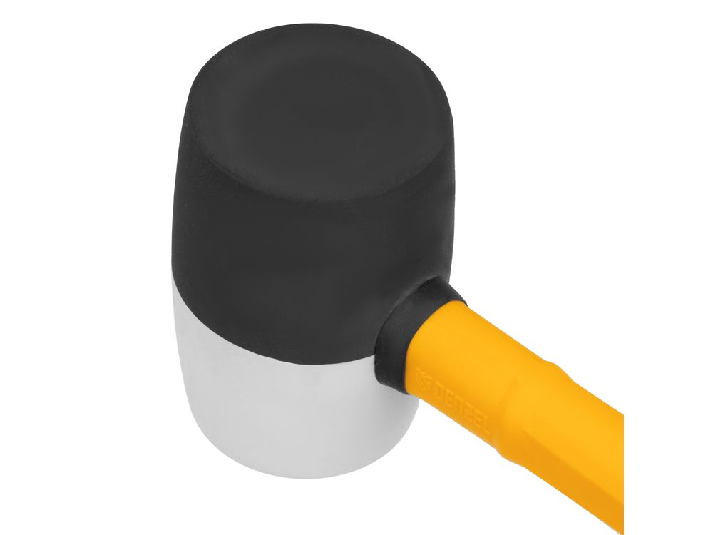 Резиновая киянка Denzel 11102 с бойком из черно-белой резины весом 450 г и фибергласовой рукояткой с TPR-покрытием, применяется во время монтажных, сборочных и кузовных работ, укладки плитки. Резиновый боек с высокими амортизирующими свойствами оптимален для работы с чувствительными к давлению материалами. Инструмент характеризуется высокой прочностью и стойкостью к агрессивному воздействию, подходит для профессионального использования.