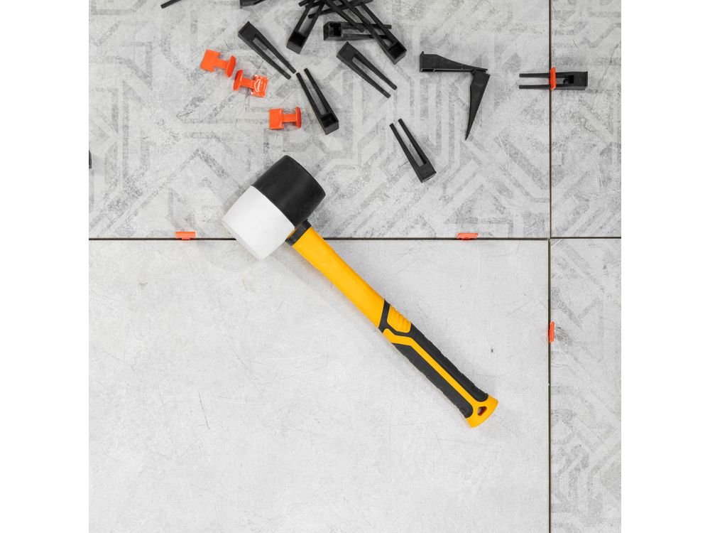 Киянка резиновая, 450 г, черно-белая, фибергласовая рукоятка c TPR покрытием