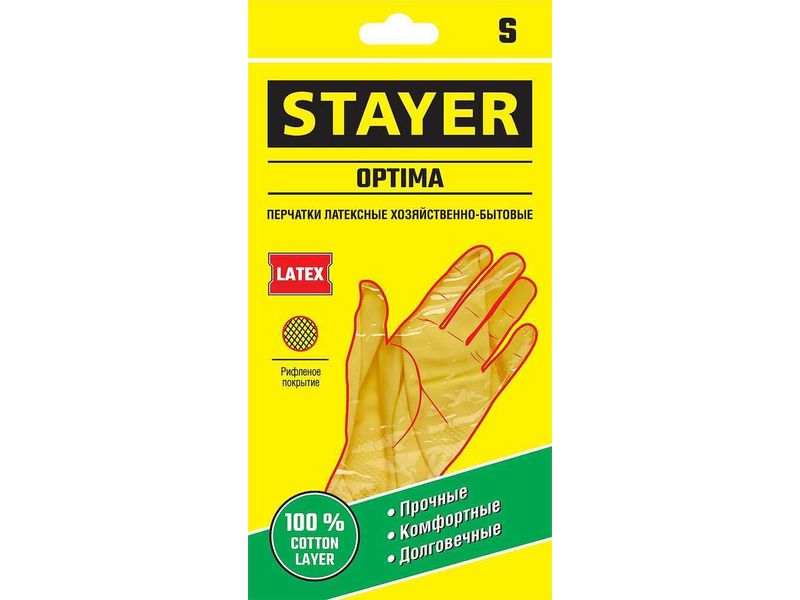 STAYER OPTIMA перчатки латексные хозяйственно-бытовые, размер S