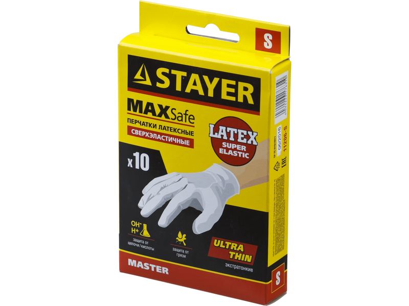 Экстратонкие перчатки STAYER применяются для защиты рук от общих производственных загрязнений и влаги. Устойчивы к воздействию слабых растворов кислот и щелочей, концентрация которых не превышает 20% (по серной кислоте и по гидроокиси натрия).