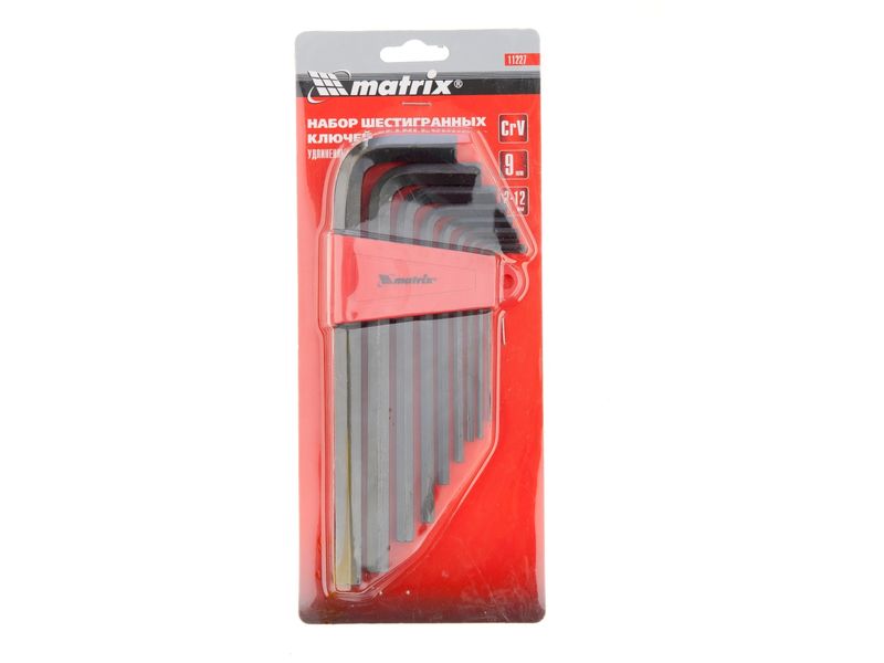 Набор Matrix 11227 из 9 удлиненных оксидированных имбусовых ключей размером 2,0-12 мм, из стали CrV, используется для монтажа и демонтажа крепежа со шлицем HEX. Шестигранники наиболее часто применяются для закручивания мебельных евровинтов и ремонта велосипедов. Удлиненные рабочие части обеспечивают удобный доступ в труднодоступные места.
