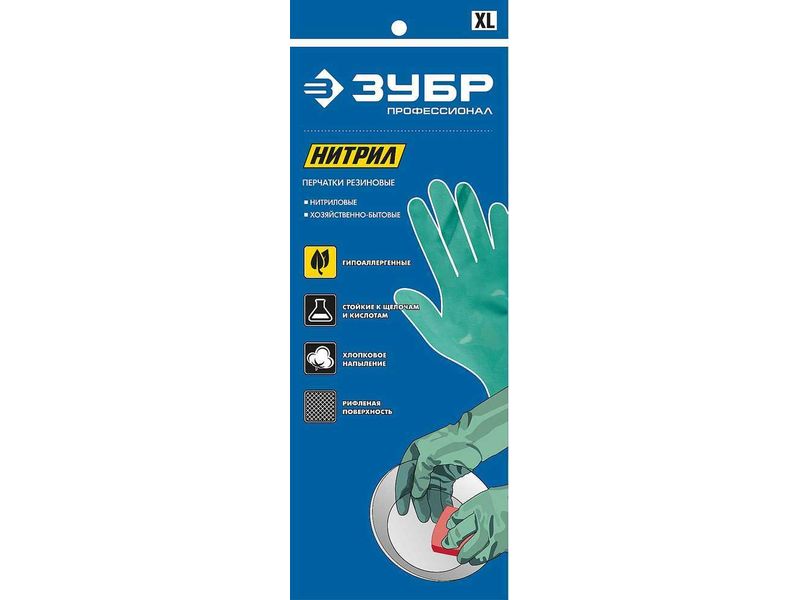 ЗУБР НИТРИЛ перчатки нитриловые, стойкие к кислотам и щелочам, размер L