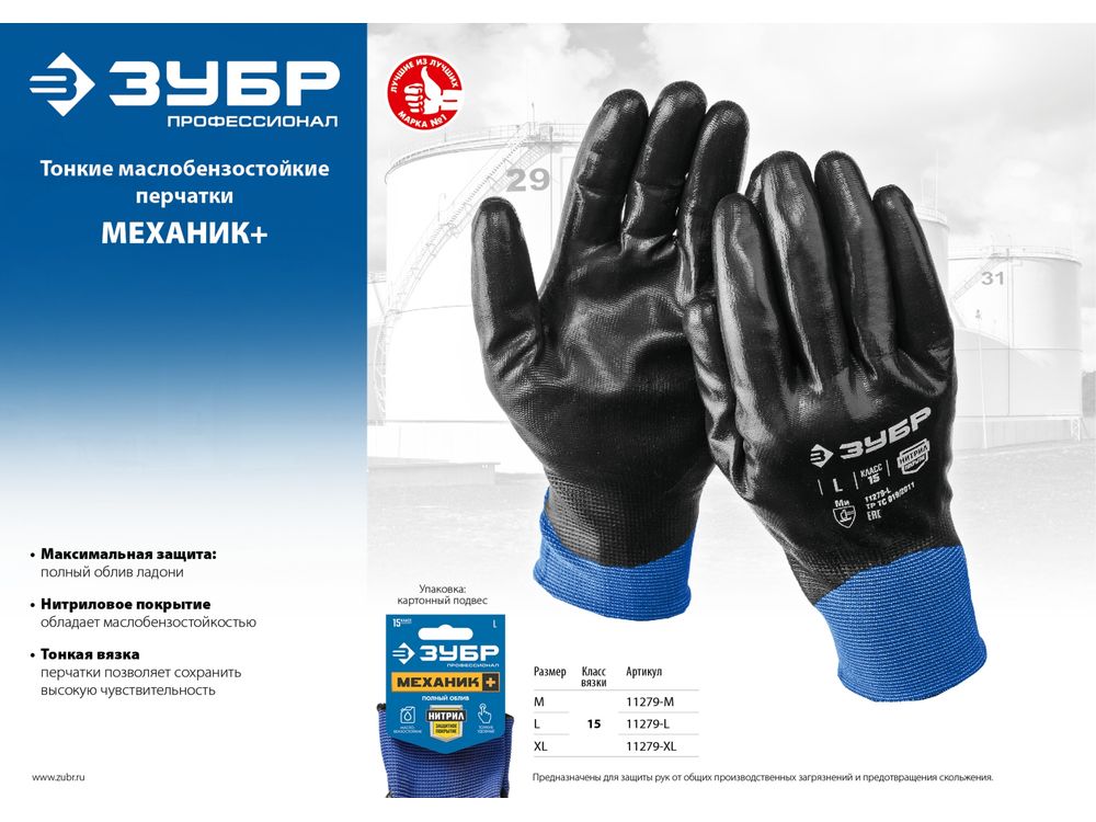 Купить ЗУБР МЕХАНИК+ размер L, полный облив, перчатки маслобензостойкие тонкие
