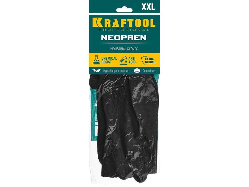 KRAFTOOL NEOPREN неопреновые индустриальные перчатки, противокислотные, размер XXL