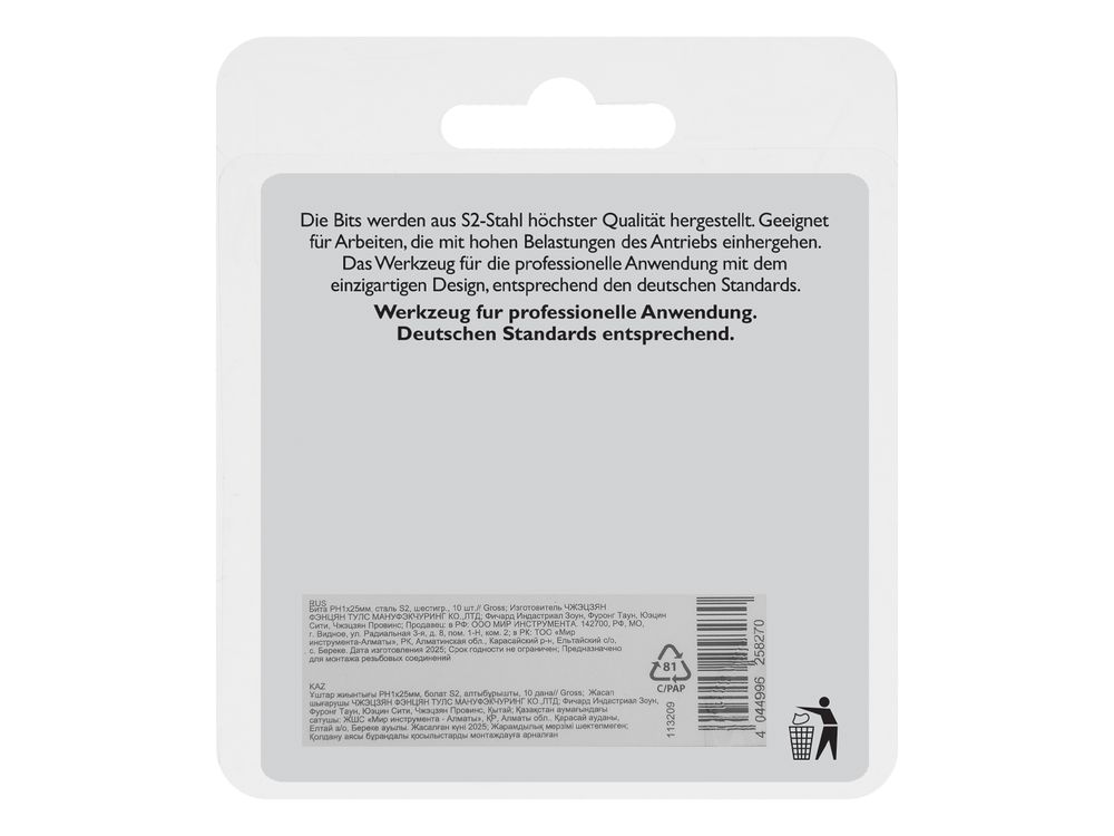 Бита PH1х25мм, сталь S2, шестигр., 10 шт.-591
