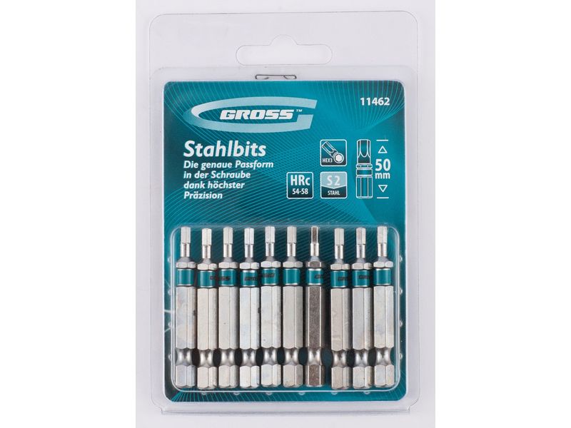 Набор бит Gross 11462 состоит из 10 сменных насадок HEX 3 х 50 мм с шестигранным хвостовиком 1/4 дюйма, изготовленных из стали S2, которые используются в качестве оснастки на шуруповертах. Биты типоразмера HEX3 предназначены для монтажа и демонтажа мебельных и велосипедных евровинтов. Шестигранный шлиц обеспечивает большую площадь соприкосновения с крепежом, что позволяет увеличить крутящий момент без риска повреждения биты.