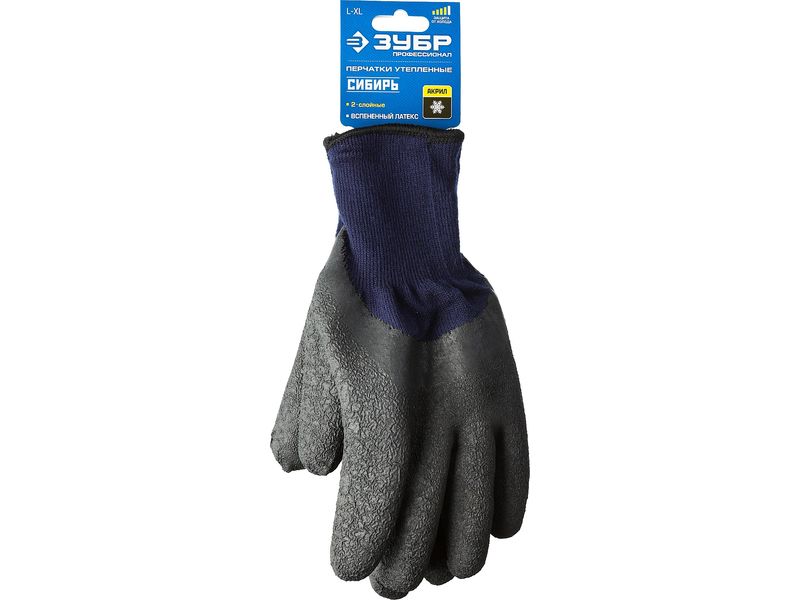 Перчатки утепленные Сибирь, акриловые с вспененным латексным покрытием, двойные, L-XL, ЗУБР Профессионал 11466-XL