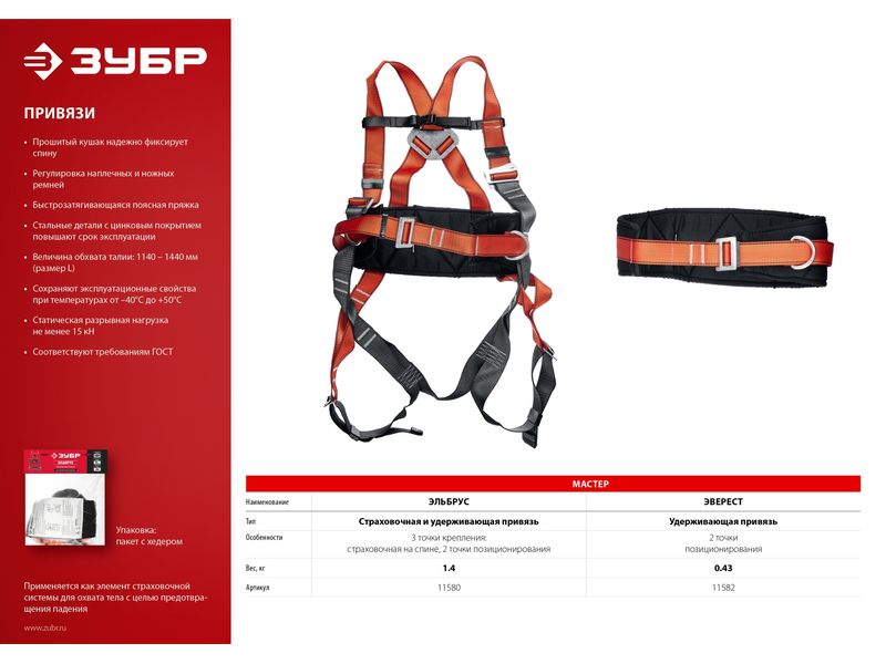 Купить Страховочная и удерживающая привязь Эльбрус, ЗУБР
