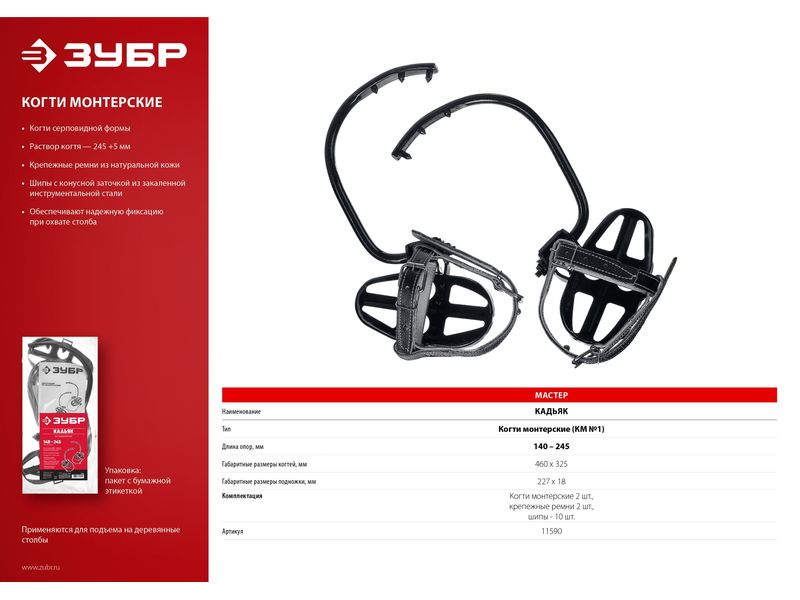 Средства защиты труда arrow Высотные работы arrow Кадьяк когти монтерские серповидные, ЗУБР-12031