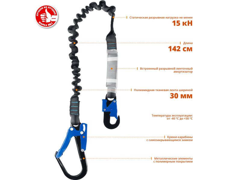 Средства защиты труда arrow Высотные работы arrow cтроп эластичный одноплечный, полиамидная лента, с амортизатором, ЗУБР Профессионал Утёс-12031