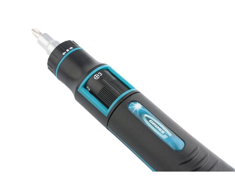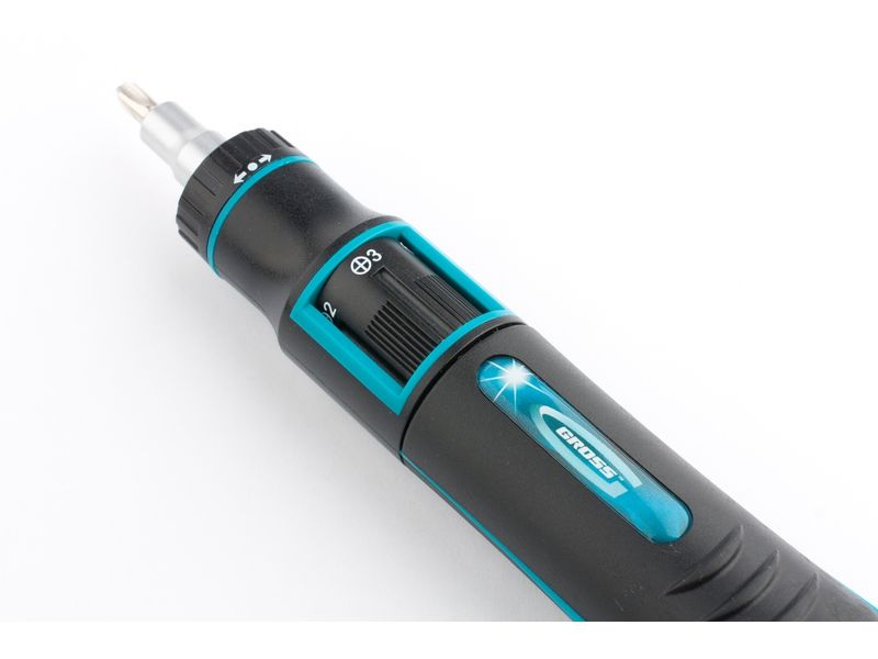 Реверсивная отвертка с револьверным механизмом Gross 11601 из стали S2, в наборе из 11 предметов, значительно повышает производительность работы при монтаже/демонтаже крепежа. За счет храпового механизма не нужно перехватывать руку или вынимать шлиц из крепежа, поэтому инструмент оптимален для профессионального использования. В качестве сменных насадок для отвертки можно применять любые биты длиной 25 мм с хвостовиком 1/4 дюйма.