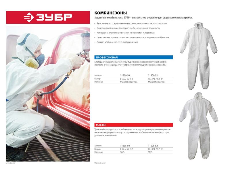 Защитные комбинезоны ЗУБР предназначен для защиты одежды от общих производственных загрязнений и брызг не разъедающих жидкостей.