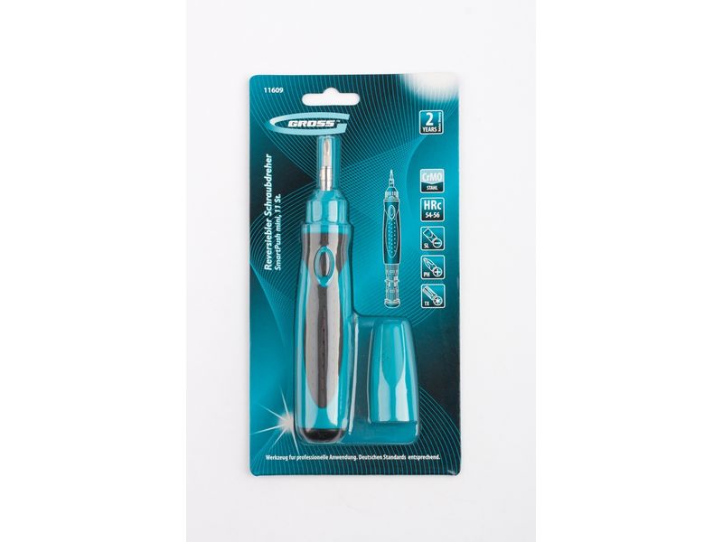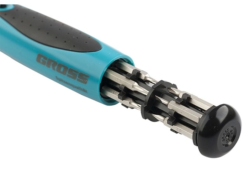 Реверсивная отвертка Gross mini 11609 с механизмом Smart Push комплектуется 11 сменными битами из стали CrMo для точных работ с маленькими деталями. С ее помощью можно отремонтировать электротехнику, часы, очки, детские игрушки, мелкие бытовые приборы и т.д. Реверсивный механизм повышает удобство и скорость работы, снижая усталость рук. Отвертка станет незаменимым помощником в доме и мастерской.