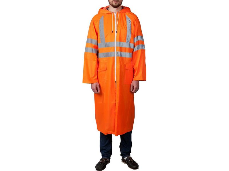 Плащ-дождевик ЗУБР 11617-52, сигнальный цвет, нейлоновый на молнии, размер 52-54