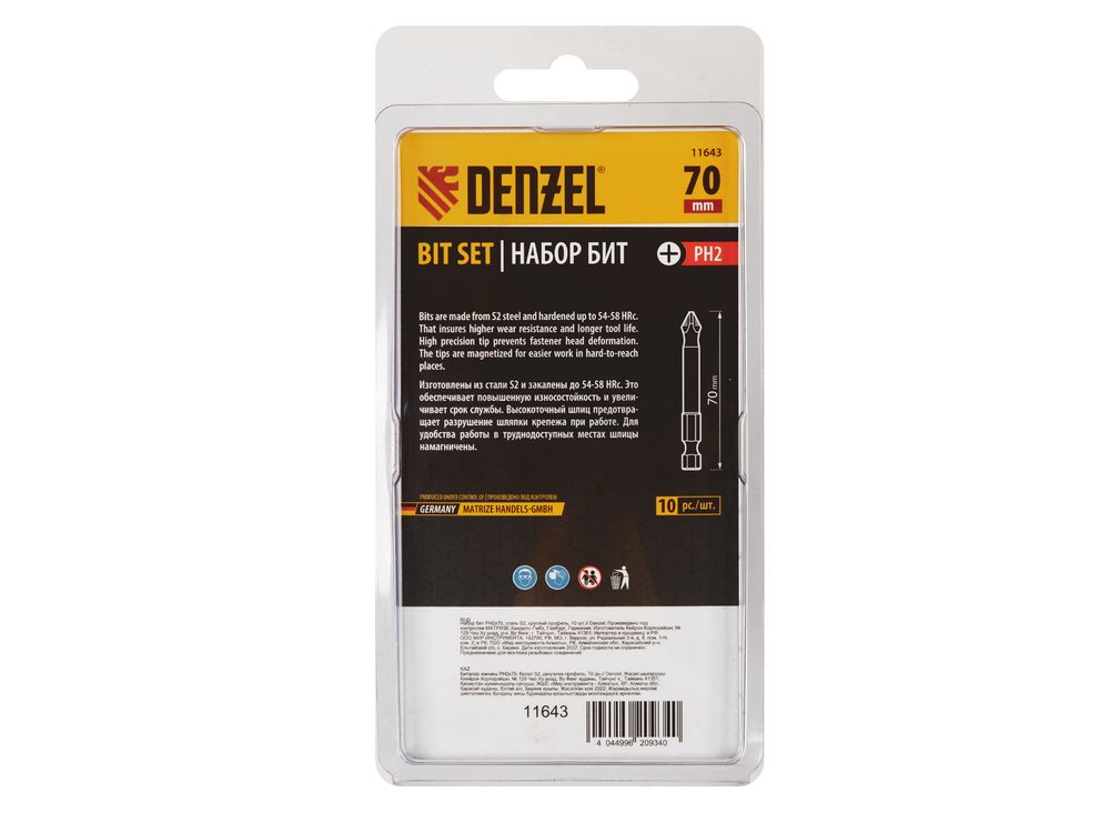 Бита PH2х70, сталь S2, цилиндр., 10 шт. Е 6,3-591