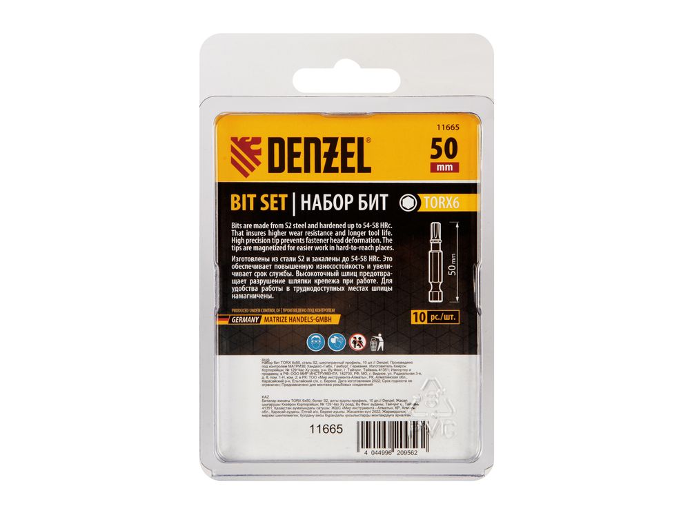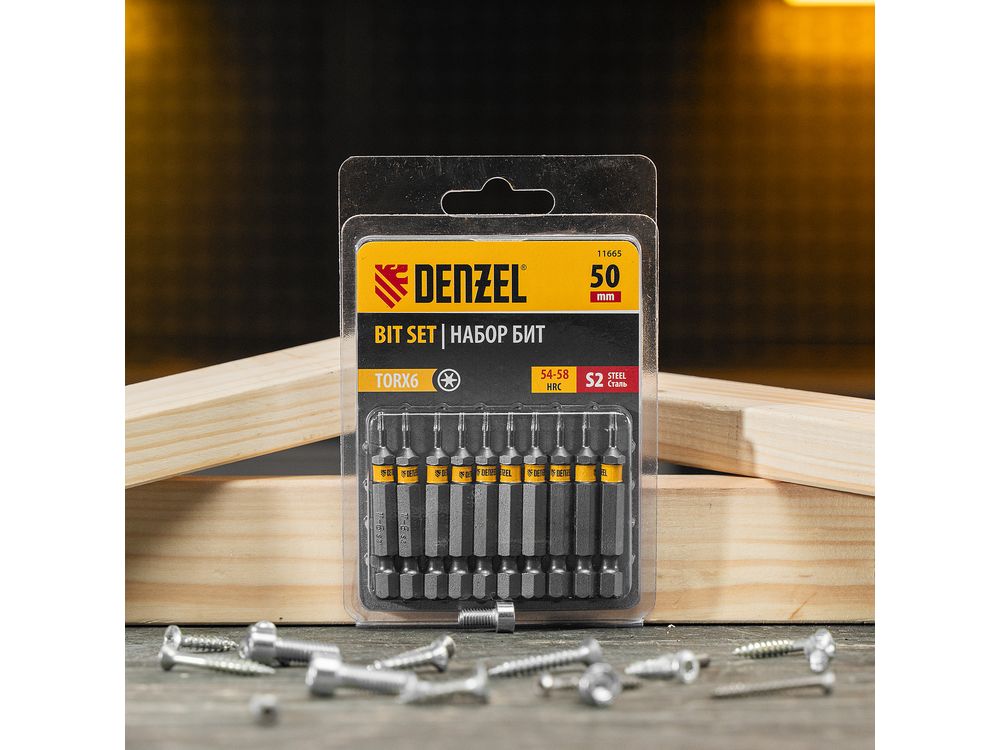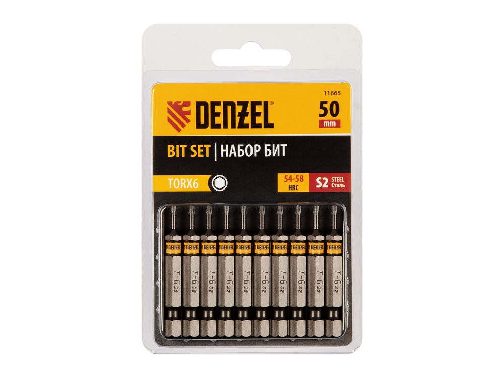 Набор бит TORX 6 х 50 мм Denzel 11665 включает в себя 10 насадок с хвостовиком 1/4, из стали S2, для работы с шуруповертами. Шлиц в форме звезды служит для быстрого монтажа и демонтажа винтов при сборке бытовой техники и электроприборов. Набор универсален и подходит как для бытового, так и для профессионального применения. Благодаря конструктивной особенности лучи «звезды» надежно сцепляются с крепежом, нагрузка равномерно распределяется на все грани, это снижает риск соскальзывания биты и обеспечивает высокую точность работ.