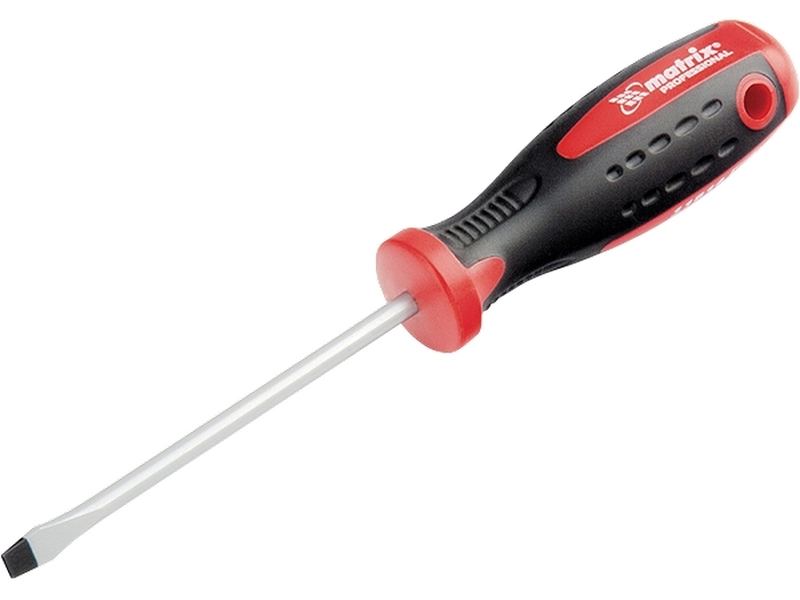 Отвертка Matrix «Profi» 11814, SL5,5 х 100 мм, из стали S2, с двухкомпонентной рукояткой, служит для монтажа и демонтажа крепежа со шлицем Slotted «минус». Профессиональная отвертка станет незаменимым помощником при осуществлении монтажных, строительных и ремонтных работ. Благодаря стержню длиной 100 мм можно закручивать и откручивать крепеж в углублениях.