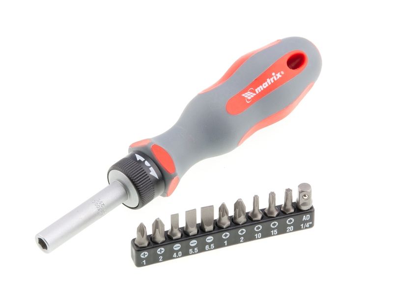 Купить Отвертка реверсивная с набором бит и магнитным держателем,CrV,12шт