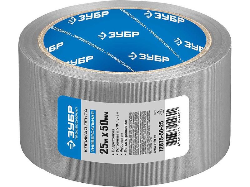 Лента ЗУБР "ЭКСПЕРТ" "РЕФИЛ", клейкая, рефленая, водоотталкивающая, устойчивая к УФ. 50 мм х 25 м, металлик |