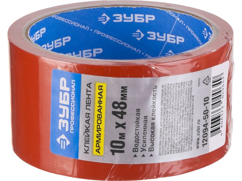 Купить Армированная лента, ЗУБР Профессионал 12094-50-10, универсальная, влагостойкая, 48мм х 10м, красная