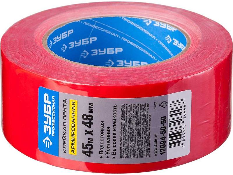 Армированная лента, ЗУБР ПРОФЕССИОНАЛ 12094-50-50, универсальная, влагостойкая, 48мм х 45м, красная-105