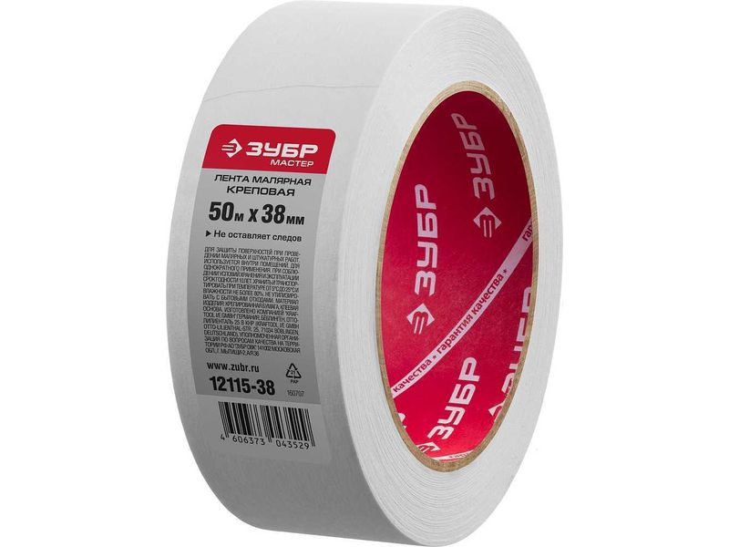 Лента ЗУБР "ЭКСПЕРТ" малярная креповая, 38мм х 50мЛента ЗУБР "ЭКСПЕРТ" малярная креповая, 38мм х 50м