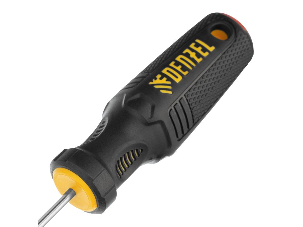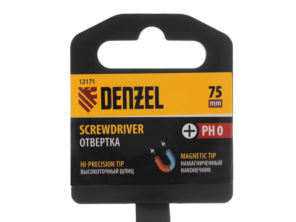 Отвертка PH0 х 75 мм Denzel 12171 из стали CrV, с трехкомпонентной рукояткой, предназначена для закручивания и откручивания резьбовых крепежей типа Philips. Шлиц намагничен, что избавляет от необходимости придерживать винт или саморез рукой. Отвертка рекомендована для профессионального использования.