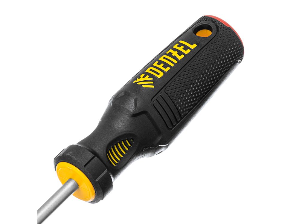 Отвертка Denzel 121827 с трехкомпонентной рукояткой, со стержнем из стали S2, длиной 200 мм, предназначена для закручивания и откручивания резьбового крепежа типа PH2. Высокоточный намагниченный шлиц избавляет мастера от необходимости придерживать винт или саморез рукой. Отвертка рекомендована для профессионального использования.