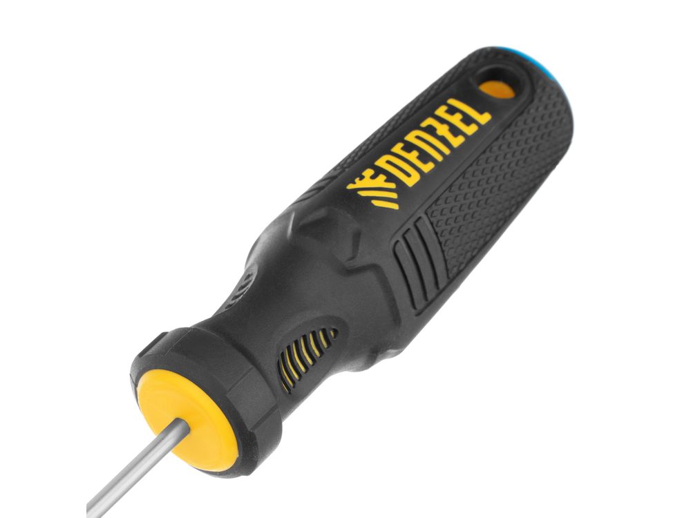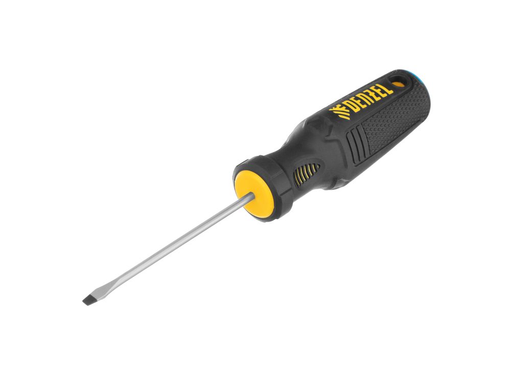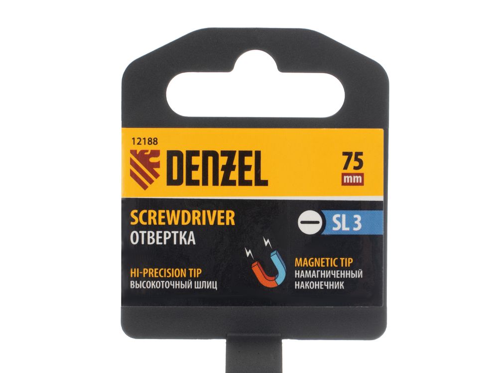 Отвертка SL3 х 75 мм Denzel 12188 из стали CrV, с трехкомпонентной рукояткой, используется для монтажа и демонтажа винтов и саморезов с прямым шлицем Slotted. Намагниченный шлиц крепко фиксируется в головке крепежа. Отвертка выдерживает интенсивное применение и предназначена для выполнения профессиональных ремонтных и монтажных работ.