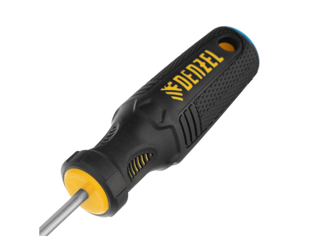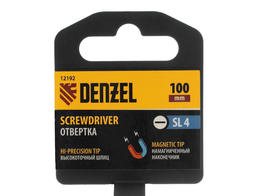 Отвертка SL4 х 100 мм Denzel 12192 из стали CrV, с трехкомпонентной рукояткой, используется для монтажа и демонтажа винтов и саморезов с прямым шлицем Slotted. Намагниченный шлиц крепко фиксируется в головке крепежа. Отвертка выдерживает интенсивное применение и предназначена для выполнения профессиональных ремонтных и монтажных работ.