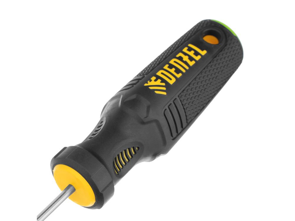 Отвертка PZ0 x 75 мм Denzel 12203 из стали CrV, c трехкомпонентной рукояткой, предназначена для монтажных и демонтажных работ с резьбовыми соединениями типа Pozidriv. Благодаря намагниченному шлицу отвертку с крепежом можно направлять одной рукой, удерживая другой закрепляемую деталь. Инструмент подходит для профессионального использования.
