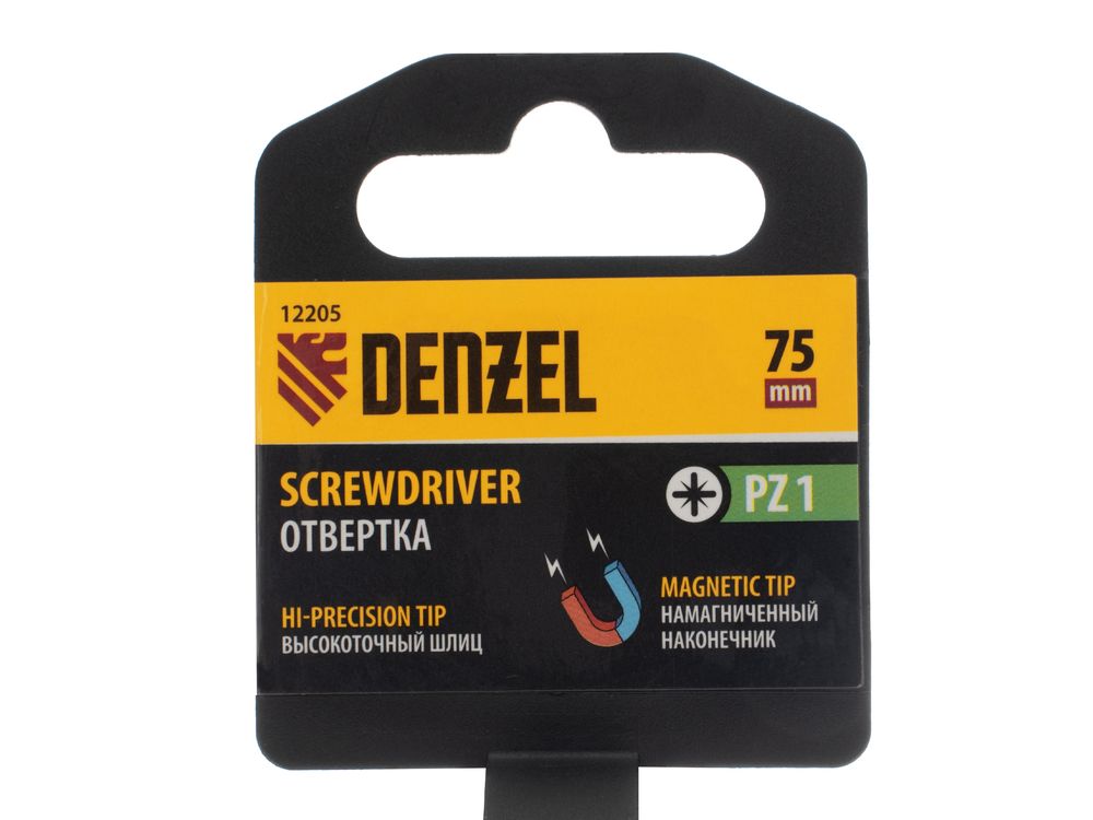 Отвертка PZ1 x 75 мм Denzel 12205 из стали CrV, c трехкомпонентной рукояткой, предназначена для монтажных и демонтажных работ с резьбовыми соединениями типа Pozidriv. Благодаря намагниченному шлицу отвертку с крепежом можно направлять одной рукой, удерживая другой закрепляемую деталь. Инструмент подходит для профессионального использования.