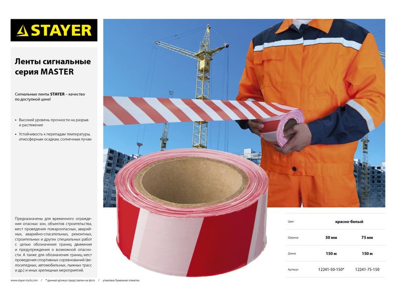 Купить Сигнальная лента STAYER "MASTER", цвет красно-белый, 75мм х 150м