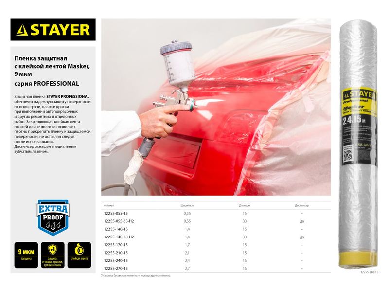 Купить Пленка STAYER PROFESSIONAL защитная с клейкой лентой МАСКЕР, HDPE, 9мкм, 2,4х15м
