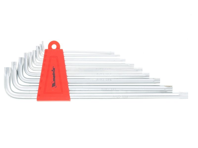 Набор Matrix 12307, включающий 9 экстра-длинных имбусовых сатинированных ключей TORX из стали CrV, используется для работ с крепежом Т10-Т50, имеющим звездообразный профиль. Пригодится частному мастеру для ремонта бытовой техники и электроприборов. Экстра-длинные ключи удобны для работы в труднодоступных местах.