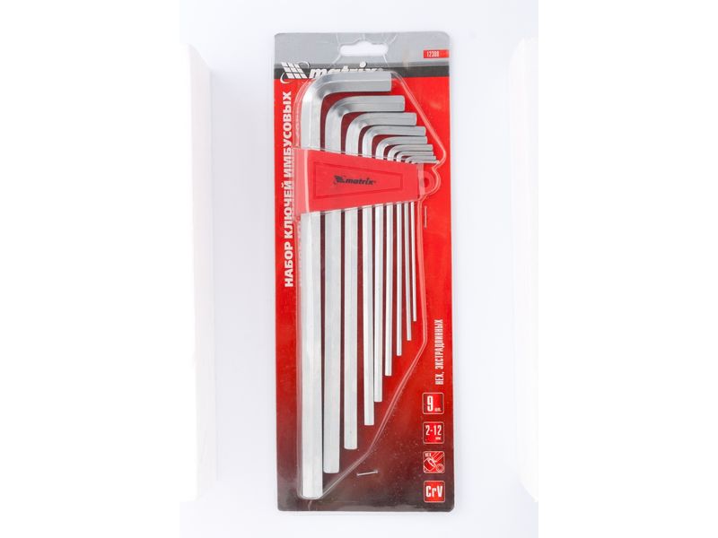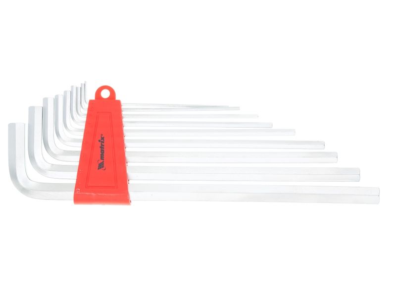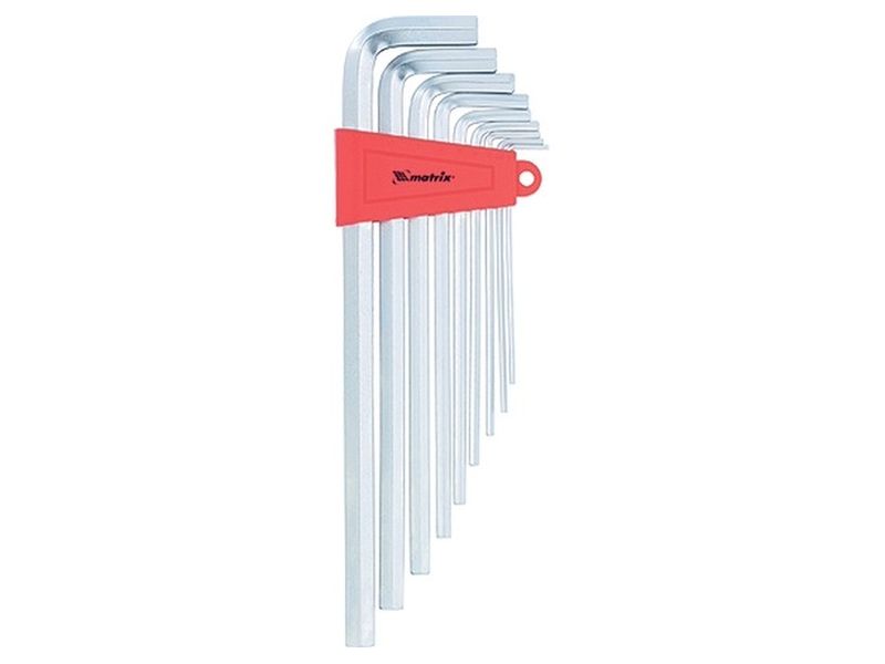 Набор длинных имбусовых ключей торговой марки MATRIX предназначен для работы с крепежом, оснащенным шлицом HEX (шестигранником). Ключи имеют Г-образную форму, изготовлены из высококачественной хромованадиевой стали твердостью 50 HRС. Сатинированное покрытие инструмента позволяет надежно удерживать ключи при высоком крутящем моменте. В состав набора входят ключи размером 2, 2.5, 3, 4, 5, 6, 8, 10 и 12 мм.