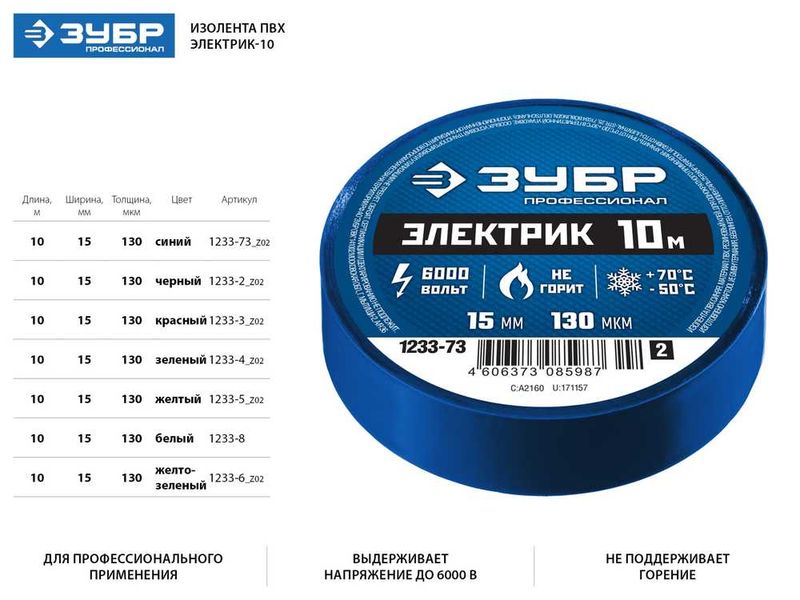 Изоляционная лента из ПВХ предназначена для изоляции и маркировки проводов при электротехнических работах с напряжением до 6000 В, а также для иных хозяйственных работ