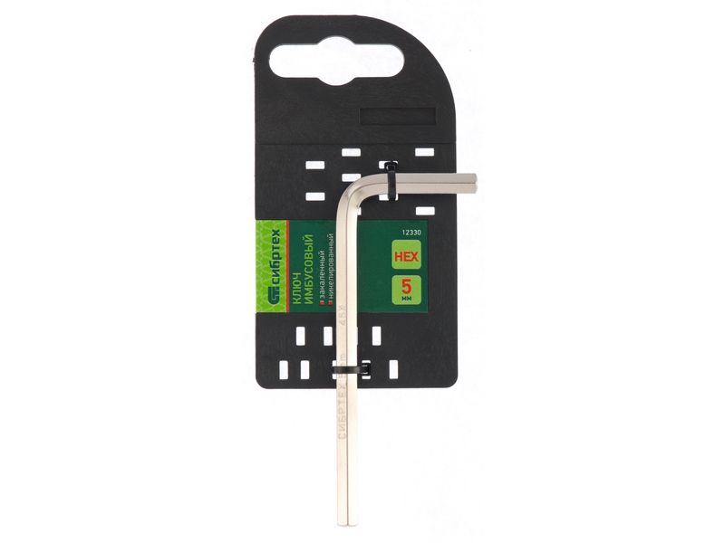 Ключ имбусовый никелированный Сибртех 12330 размером 5 мм, из закаленной стали 45Х, используется для монтажа и демонтажа резьбового крепежа с шестигранным шлицем HEX. Пригодится для сборки мебели, ремонта велосипедов, регулировки пластиковых окон и балконных дверей.