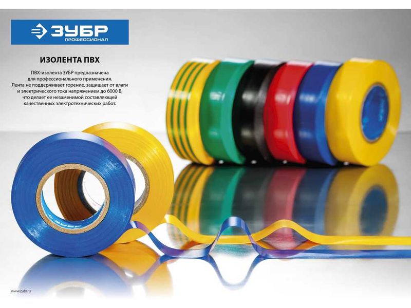 Изоляционная лента из ПВХ предназначена для изоляции и маркировки проводов при электротехнических работах с напряжением до 6000 В, а также для иных хозяйственных работ