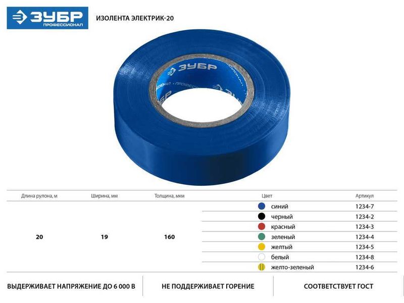 Купить ЗУБР Электрик-20 Изолента ПВХ, не поддерживает горение, 20м (0,16x19мм), белая