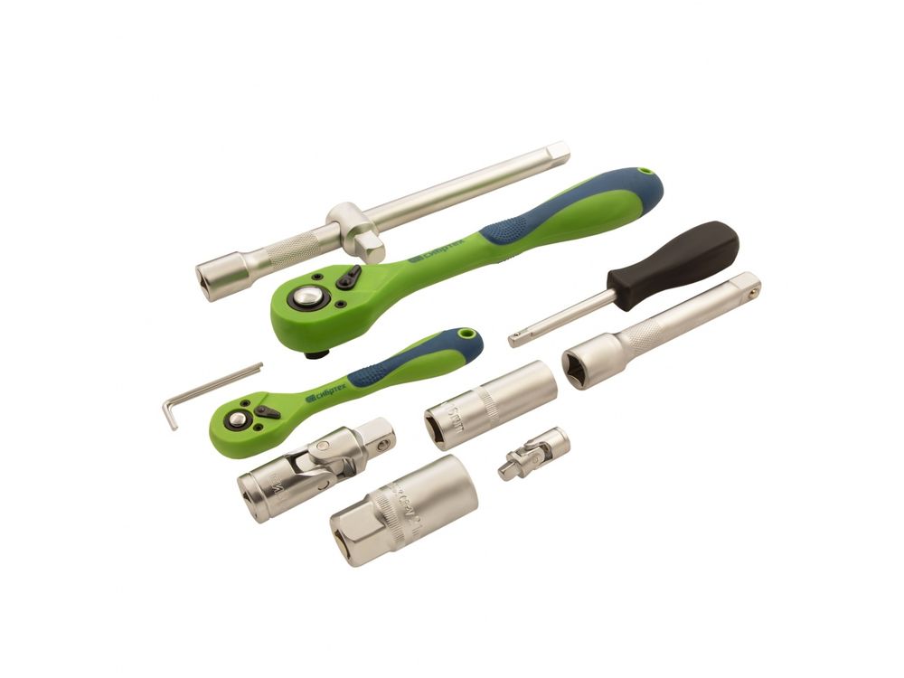 Прочность и износостойкость — элементы набора изготовлены из хромованадиевой стали, корпус каждого трещоточного ключа имеет защитное покрытие.